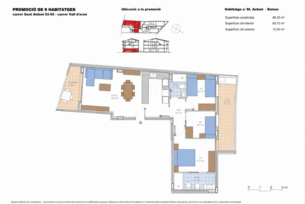 Superficie construida de 88,20m2.